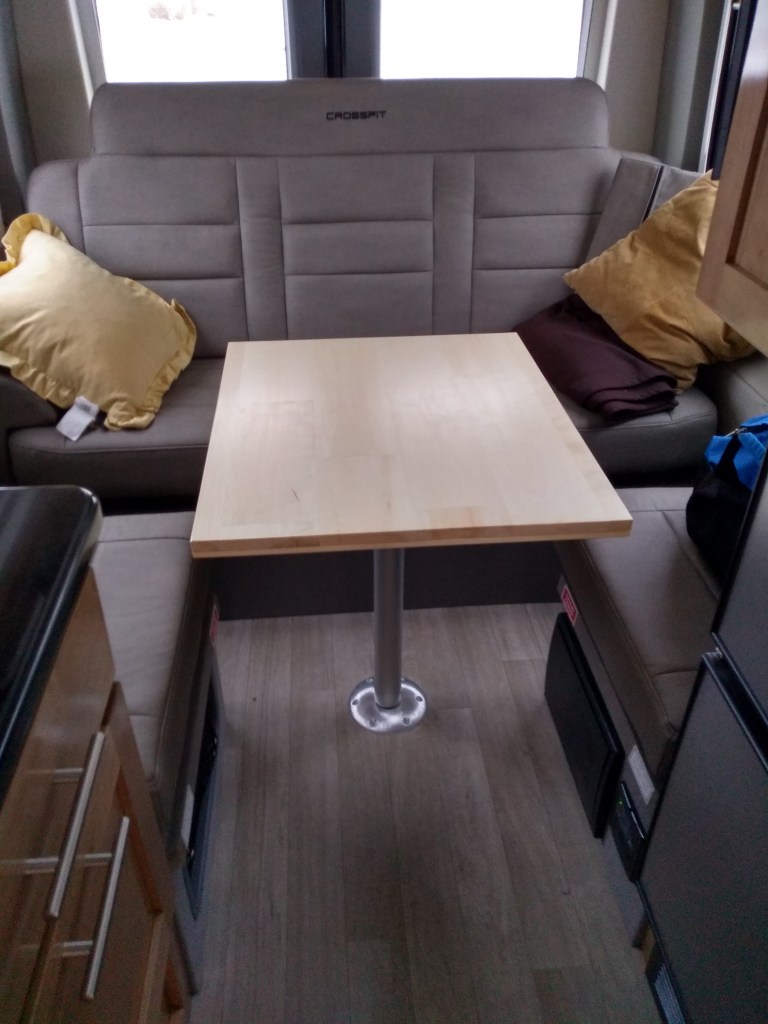 One of the downsides to the layout of the Class B RV that we bought is that the lounge/dining area where you eat and relax has to be converted into a bed at night. The back of the campervan is either a combination dining/sofa/lounge or a bed, never both.