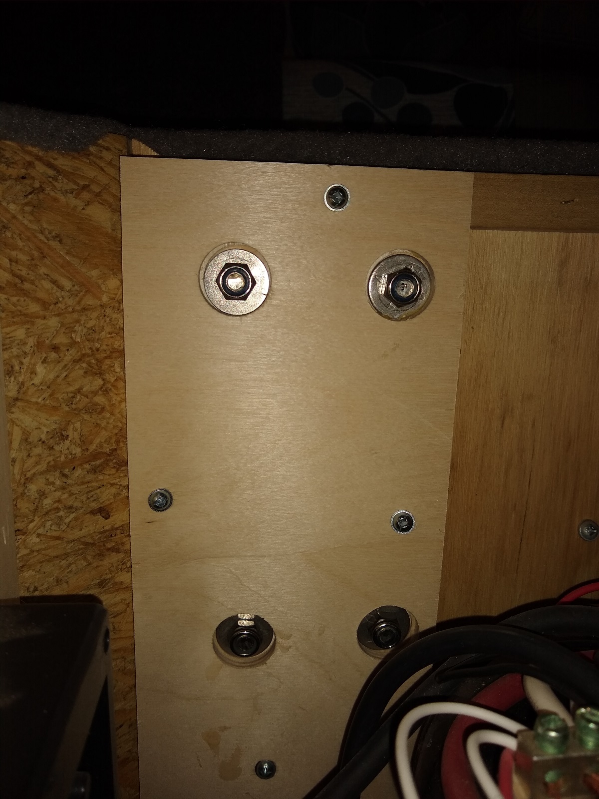 To re-enforce the ottomans I backed the mount points with a glued and screwed stack of high quality plywood that ties the ottoman structure together, and added a couple of screws to the removable ottoman covers.