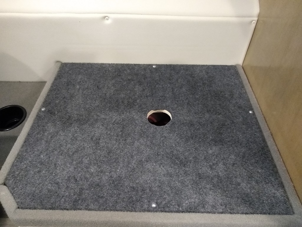 The additional screws through the cover tie the four sides of the ottoman to each other and indirectly to the inside skin of the Transit body structure. Leverage on the table mount will be carried through the cover to the inside skin campervan. The table seems rigid enough for normal use. It’s not rigid enough to use as a dance floor or engine stand though.