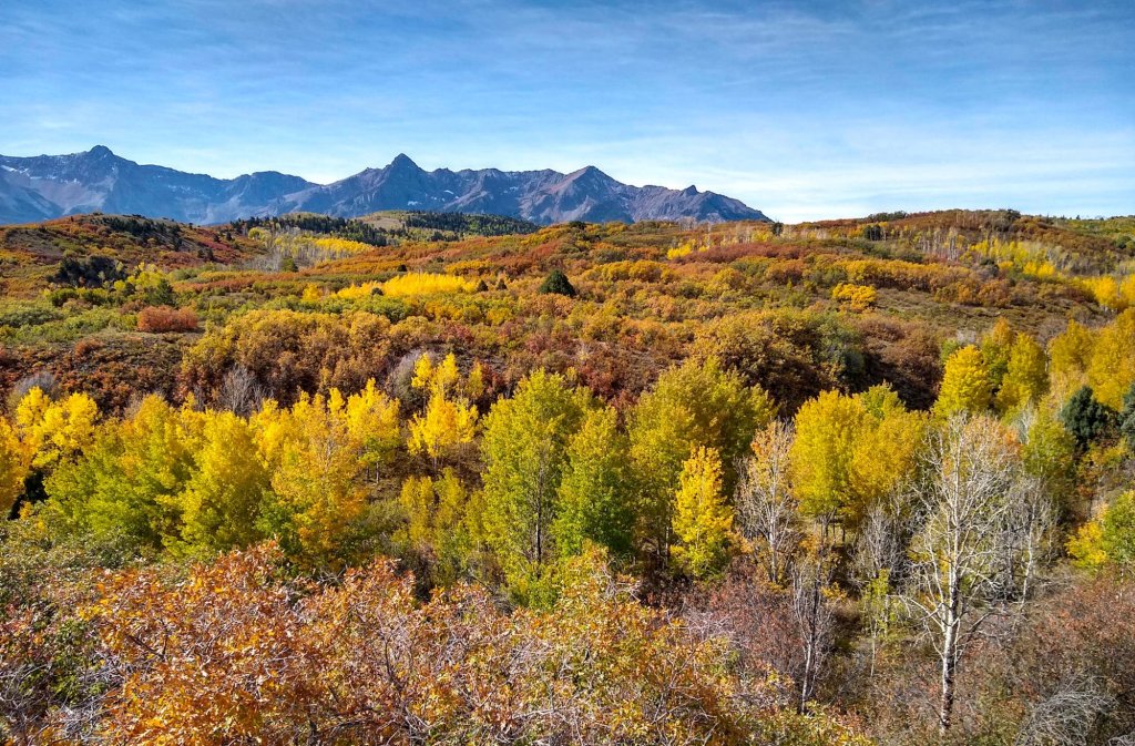 From the campground near Ridgeway we crossed over on Colorado highway 62 and found a pass with fine fall colors.