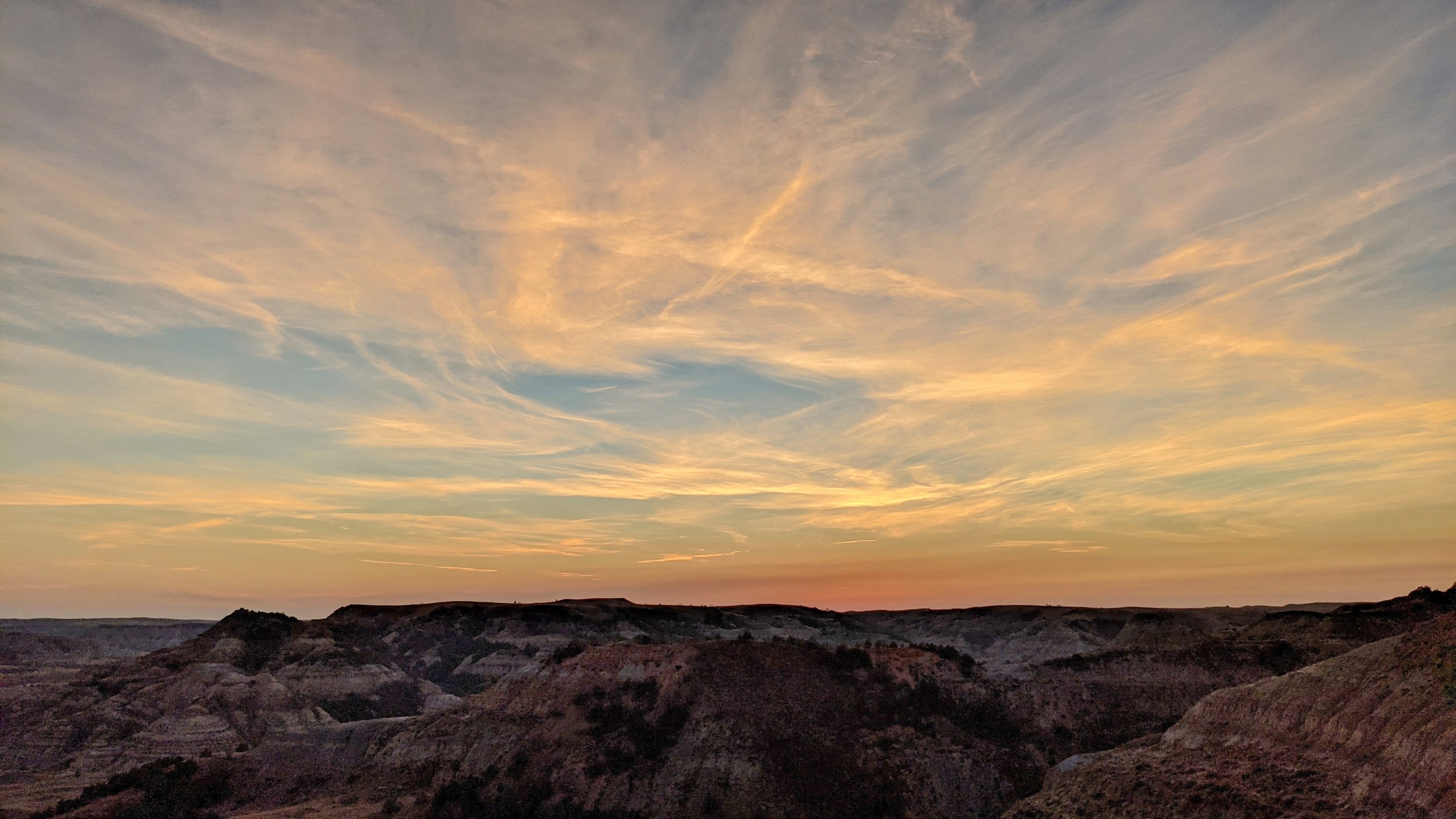 After a couple of nights in the southern unit of Theodore Roosevelt National Park we drove the seventy-five miles up to the northern unit and camped for the night. Another hot and dry day, with temps over 90F in the late afternoon.