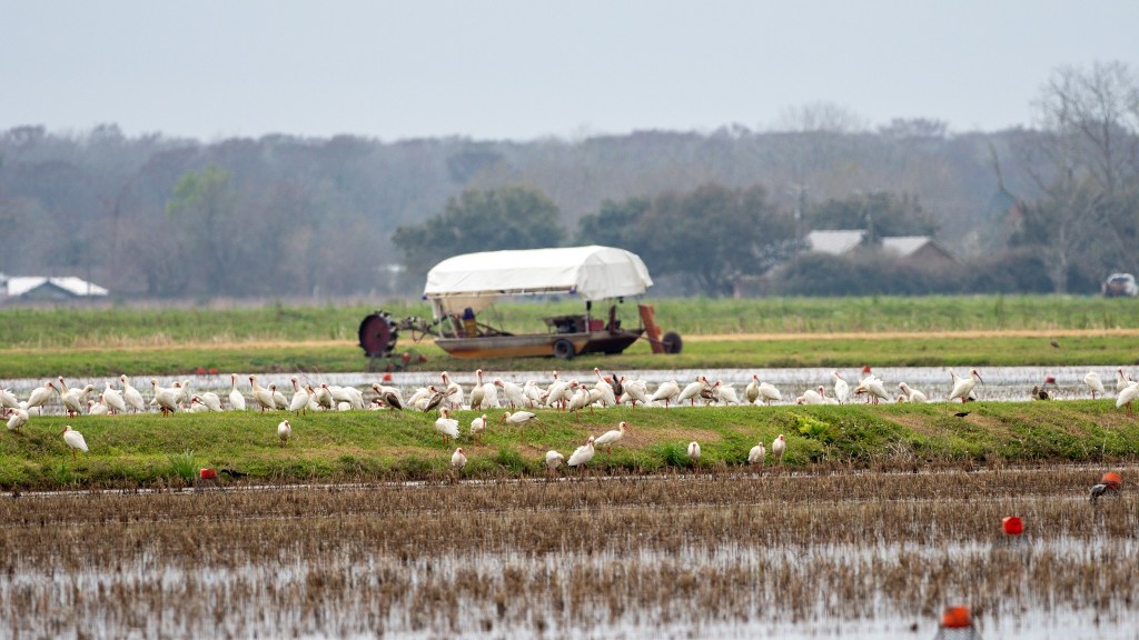 And it’s obvious that we are back in crawfish and rice paddy country. The ibis were having a feast. I’m not sure what they eat. Perhaps they’re eating the farmers crawfish?