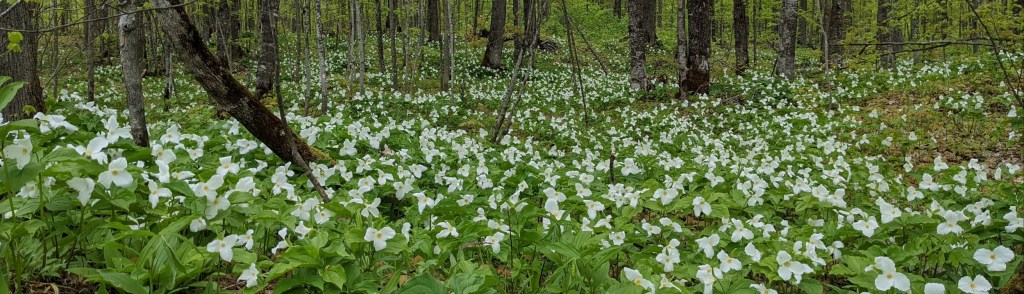 Just outside of Pictured Rocks we ran into by far the best display of trilliums I’ve ever seen. Acres of forest floor covered in white blossoms, right along the road, both sides of the road, and as far into the woods as you could see.