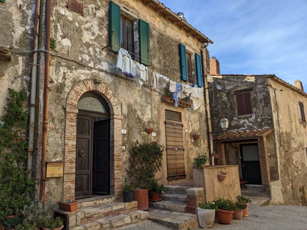 Signage indicates that the borgo was first settled in the iron age, later by Etruscans, Romans, Goths and Lombards. It was a prominent city during the Renaissance era. At one time it was part of the Republic of Siena, then part of Medici’s Duchy of Tuscany, and even a haven for bandits (maybe – the official town web site doesn’t mention bandits).