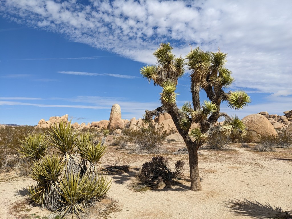 Joshua Tree National Park straddles the boundary between the Colorado and Mojave deserts. The east half is Colorado desert & much like southern Arizona. The west half, where the famous Joshua trees reside, is Mojave desert. You can see the transition as you drive north-south through the park.