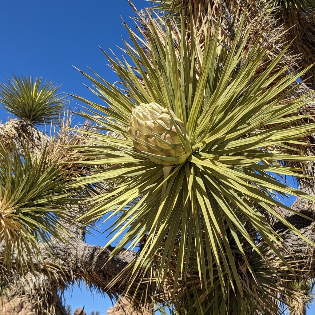 We saw what I presume to be joshua tree blossoms. Either that or really big artichokes grow on joshua trees in the desert. Could be either. Do your own research.