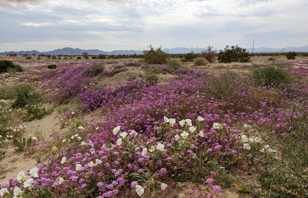 On a lighter note – we caught a few desert blooms – first at an Arizona rest area, and later in the desert near the Colorado River.