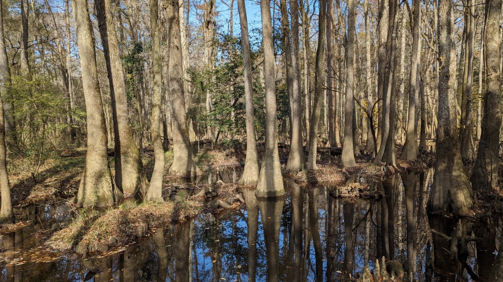 The park preserves thousands of acres of hardwood bottomlands, some of which are old growth. In this part of the country, the old growth was long gone before there was any recognition that woodland had value not measured in board-feet. Apparently this area was too difficult to log, so the trees survived.