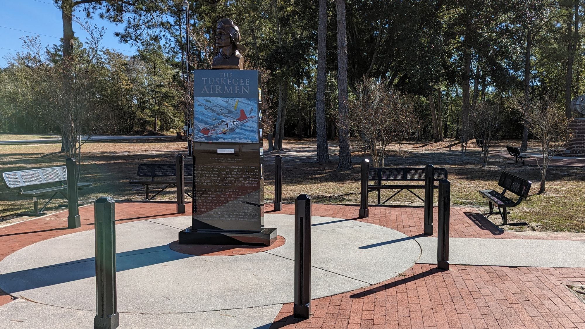 About 500 black pilots were trained (in segregated facilities) at this small airfield in Walterboro South Carolina. Hence the memorial.