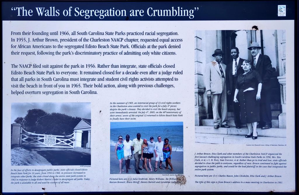 Another interesting tidbit that we picked up on while staying at Edisto Beach State Park (South Carolina) was that through the 1950’s, blacks were not permitted in the park. When sued by the NAACP, the state closed the park rather than allow the park to be integrated. The park stayed closed for a decade, until 1965 when civil rights activists forced the issue.