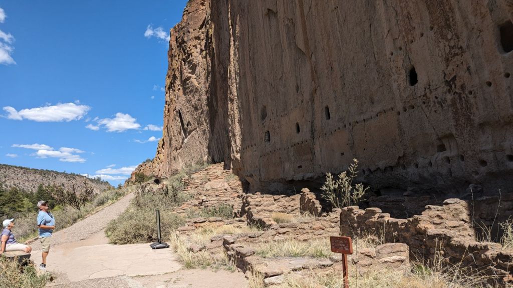 We’re in N. New Mexico, having spent a few days camping at Bandelier National Monument. The Monument preserves the remains of an ancient Pueblo civilization that lived, farmed, and hunted in the area of the Pajarito Plateau.