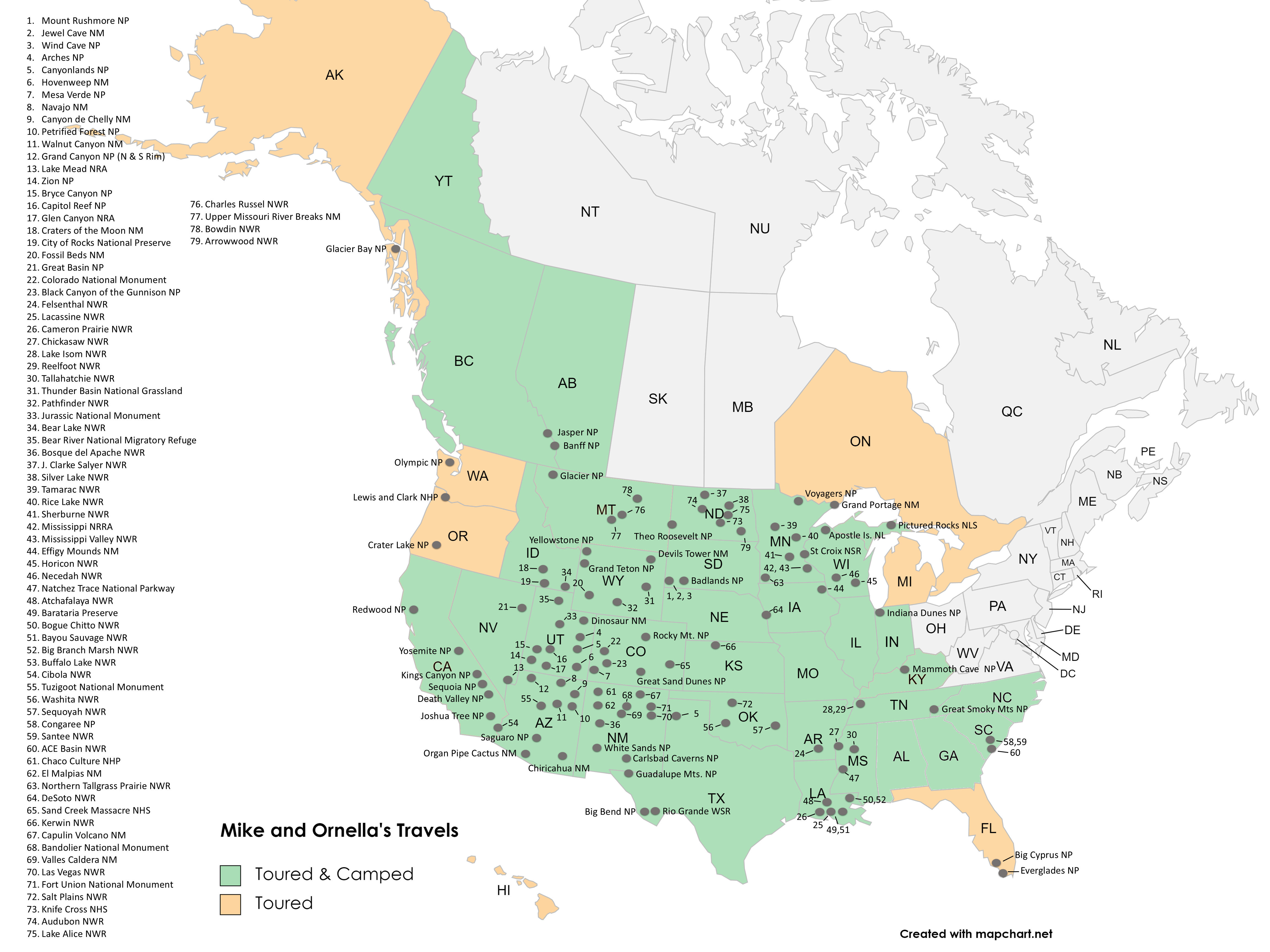 To the best of our recollection, the major trips we’ve taken are listed here. This doesn’t include camping trips in the MN & WI area – too numerous to list (or even remember).